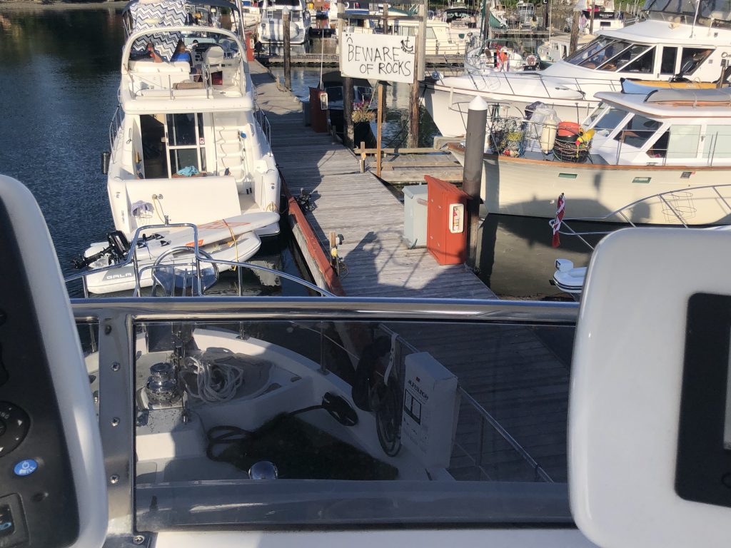 We got a chance to meet her owners, Keith and Kathy, and swapped tips and stories. Nordhavn owners are the best. We watched this lovely trawler back out of the skinny fairway like a pro, and I learned a few things about using thrusters to navigate in reverse, which I was able to immediately apply as we departed. Thank you, Keith!
