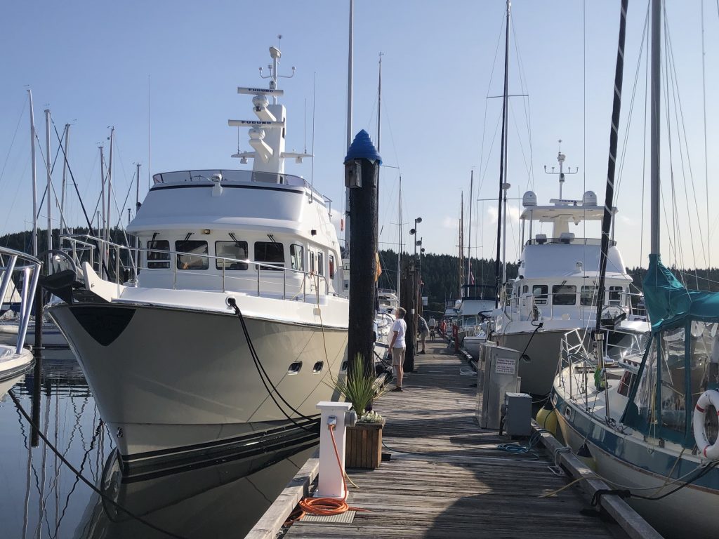 At Ladysmith, Indiscretion moored next to a Nordhavn 47, MV Sea Cairn.