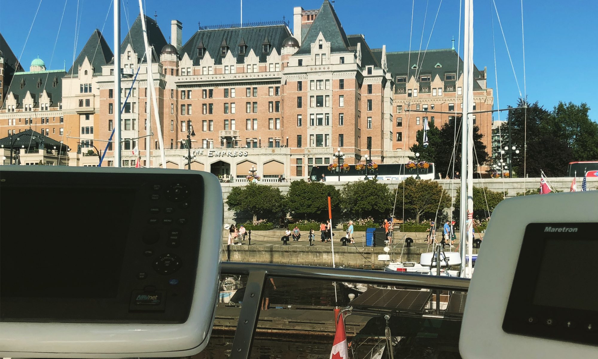 We are tied up to to the guest dock at the Causeway Marina in Victoria Harbour with a front-row seat of all the bustle and glamour that waterfront Victoria provides.