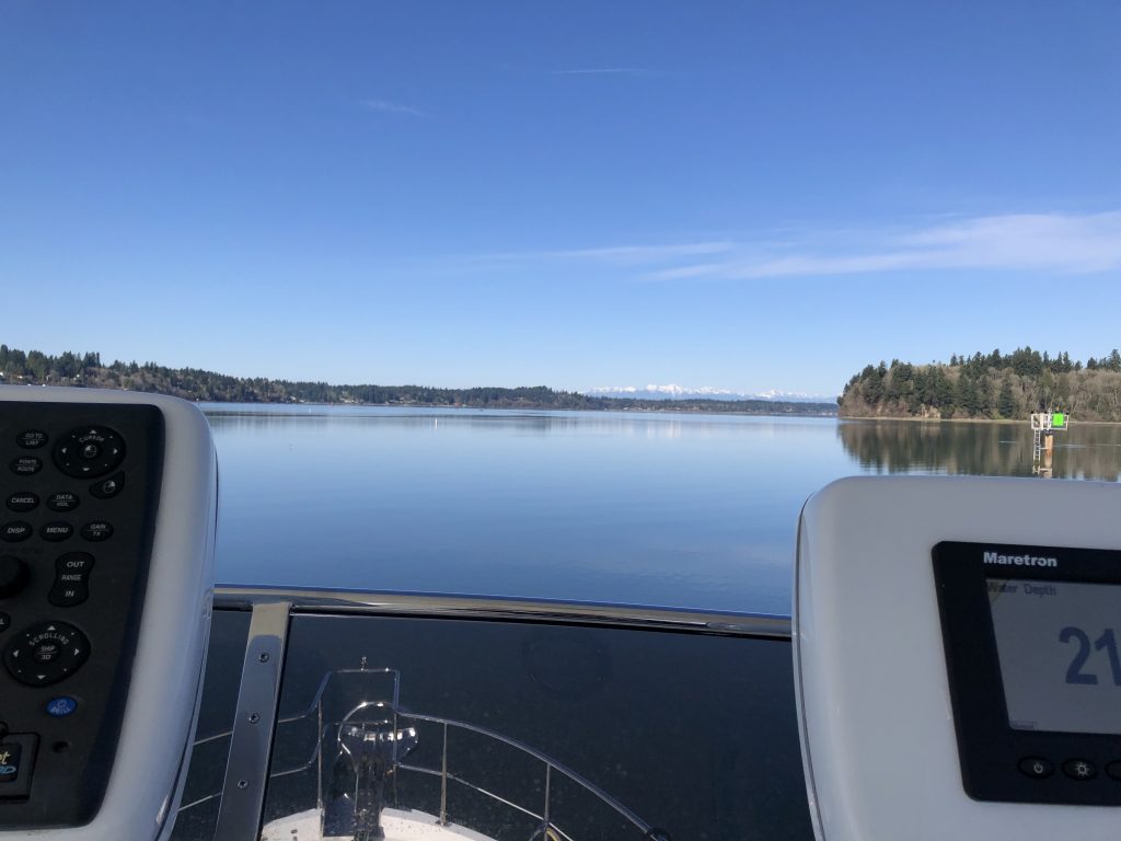 Flat water as we depart Olympia
