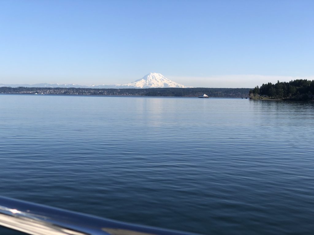 This spot is a favorite destination of mine, having moored here many times when we owned our sailboats. The view of Mount Rainier on a clear day is breathtaking.  The island is also known for its population of harbor seals which frolic on the beach at low tide and make very creepy sounds as they surface and swim in the water. Here’s a 30-second audio recording of these night-time encounters.