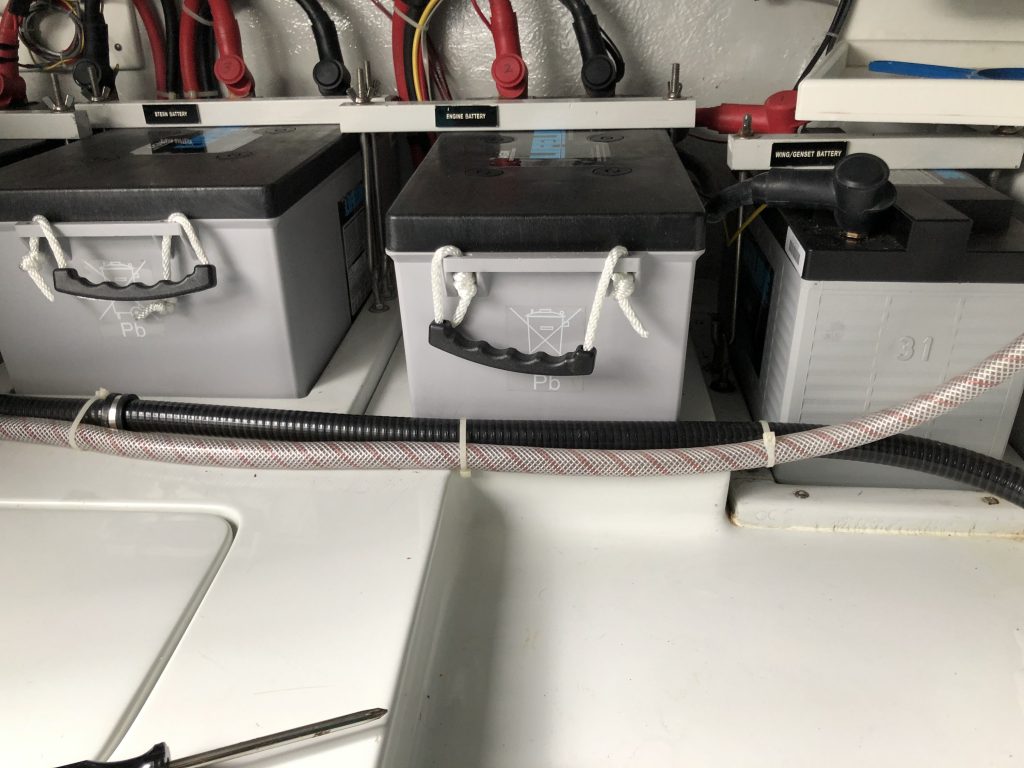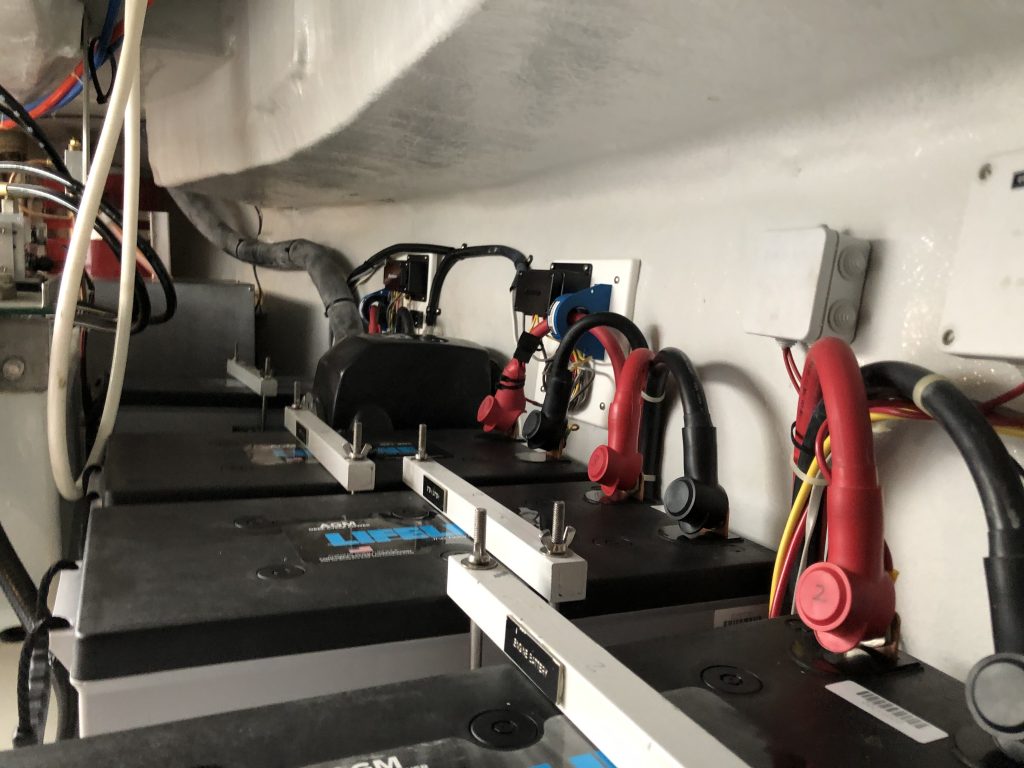 So, it was time to replace the batteries. Besides the four house batteries, we have a Lifeline 4D battery to start the main engine, and two smaller Lifelines to power the generator, wing engine, and an isolated communication battery for emergencies.