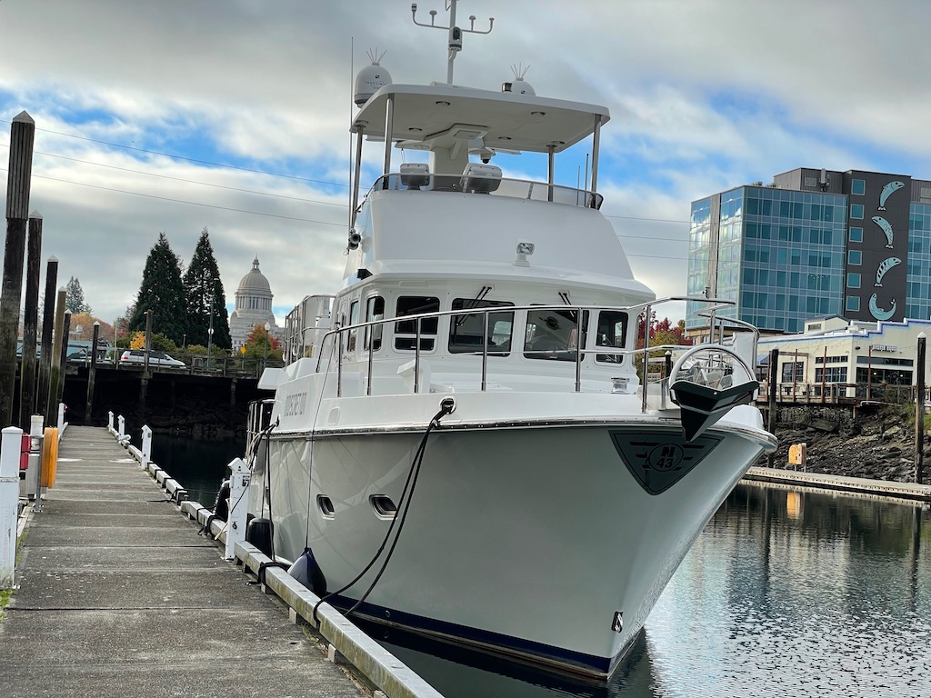 We end up taking the same slip we used on our last trip here, back when I was still learning how to dock this big boat. Fortunately, I’ve improved a lot as a skipper, and there is no drama as we tie up. We count just four other visiting boats in this spacious marina, with its convenient access to downtown Tacoma, the Glass Museum, and wonderful Foss Waterway Promenade.