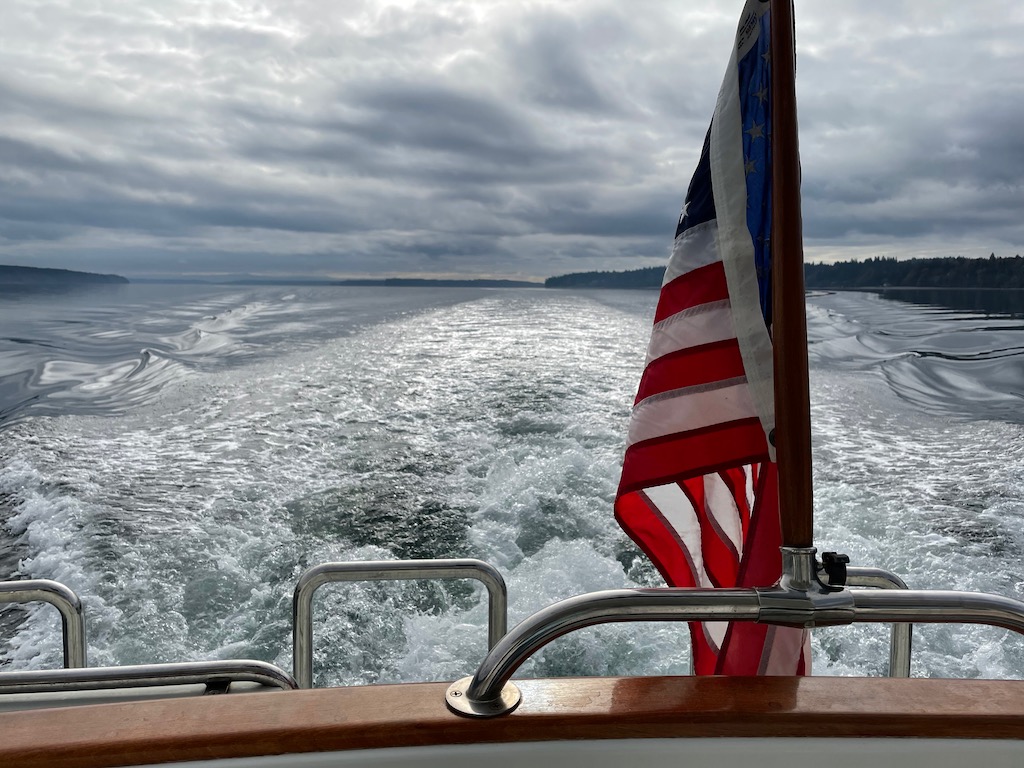 We confer over our Waggoner’s Guide and a nautical chart splayed on the pilothouse table and decide on Olympia as our first destination, which is at the far south end of Puget Sound.