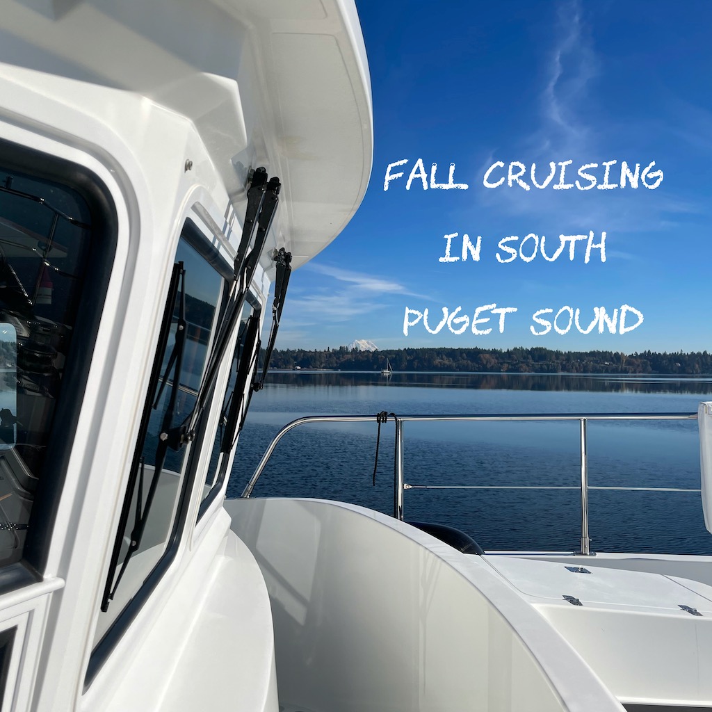 Rounding Harstine Island, we enter Budd Inlet. We have the water to ourselves. Throughout our five-hour journey, we see only three other pleasure craft — all trawlers. The empty water is so different from our cruise last month in the San Juan Islands. Like us when we sailed, the colder weather has chased almost everyone back to land.